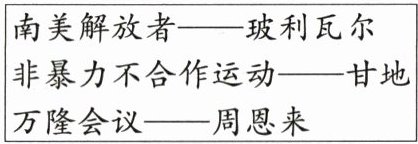 C 【解析】根据所学知识可知,18 世纪末 19 世纪初,玻利瓦尔领导了拉丁美洲独立运动,玻利瓦尔被誉为南美的“解放者”。20 世纪 20 至 30 年代甘地领导了非暴力不合作运动。1955 年 4 月,来自亚洲、非洲的 29 个国家和地区的代表举行了第一次亚非会议,在亚非万隆会议上,周恩来针对帝国主义国家破坏会议的阴谋和各国的分歧,提出了“求同存异”的方针,促进了会议的圆满成功,也促进了中国和亚非各国的团结与合作。题干三个历史小组创作的历史剧主题体现了亚非拉国家反抗殖民主义的斗争。