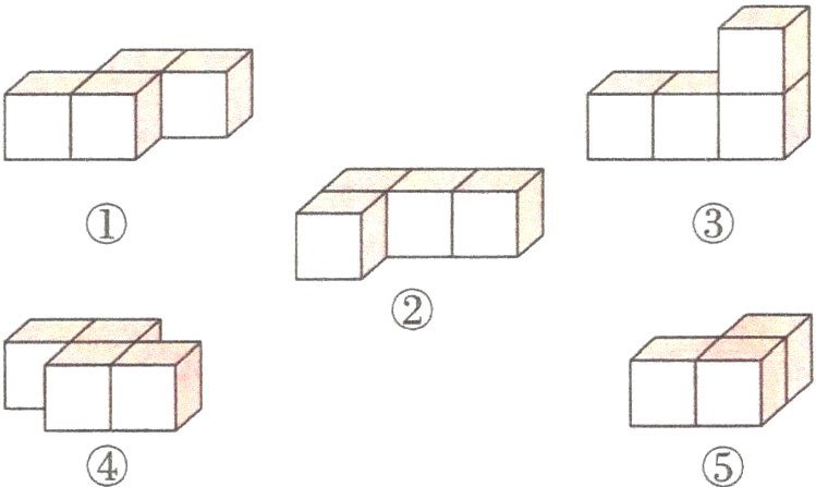 1. 从左面看下面物体,( )与其他四个都不一样。(填序号)