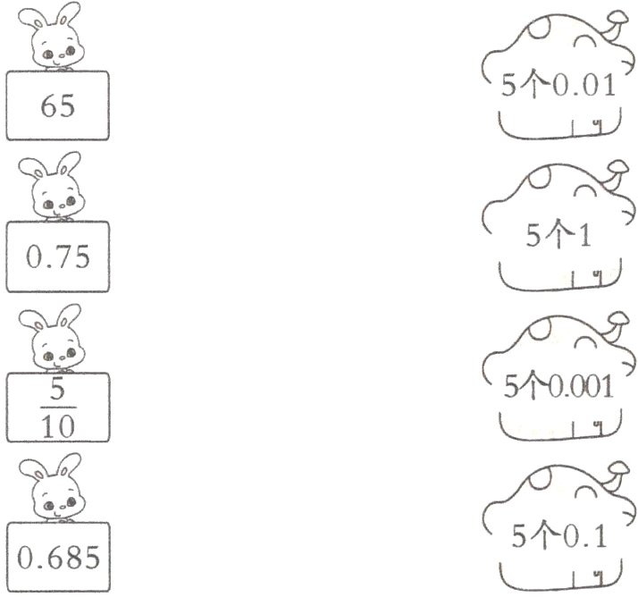 1.小白兔回家。(下面每个数中的“5”分别表示什么,用线连一连)