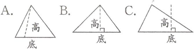 (1)下面三角形中,底边对应的高的画法,正确的是( )。