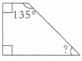 (1)$360^{\circ}-90^{\circ}-90^{\circ}-135^{\circ}=45^{\circ}$