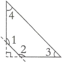 6.一张直角三角形纸片,剪去直角后变成一个四边形,求∠1和∠2的度数和。