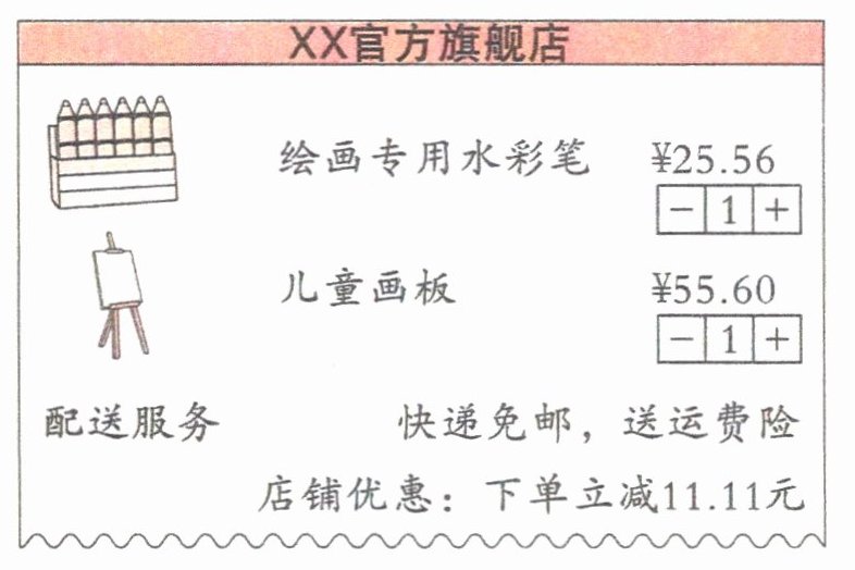 4. 下面是碧琪在网上购买“少儿绘画大赛”材料的订单信息,她实际应支付多少元?