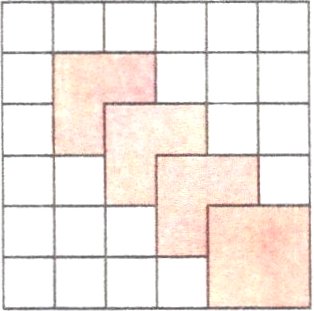 4. 如下图,网格图上(每一小格的边长都是1cm)有4张同样大小的正方形彩纸(部分重叠),重叠部分的边长是正方形边长的一半。求重叠后整个图形的周长。
