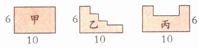 (1)甲、乙、丙三张图形的周长相比,( )。