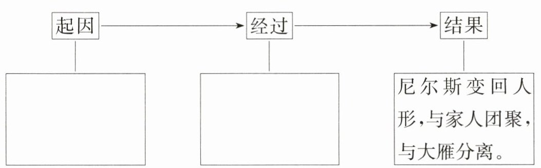2. 根据梗概内容,梳理全文故事的起因、经过和结果,补全下面的导图。(2分)