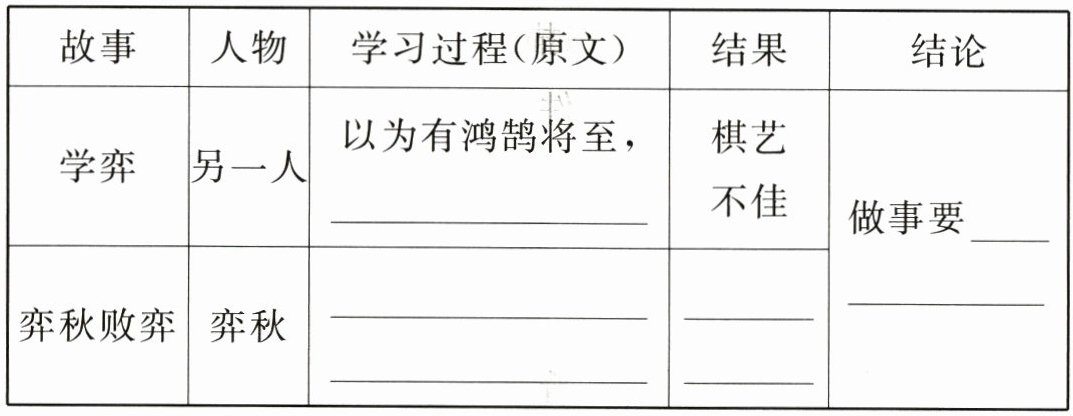 弈秋,通国之善弈者也。使弈秋诲二人弈,其一人专心致志,惟弈秋之为听;一人虽听之,一心以为有鸿鹄将至,思援弓缴而射之。虽与之俱学,弗若之矣。为是其智弗若与?曰:非然也。