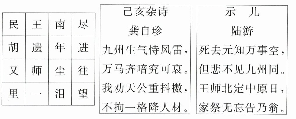 18. 这组诗都与________有关,十六宫格中藏着的诗句是:____________________。结合资料袋,谈谈你对这句诗的理解:______________________________。(6分)