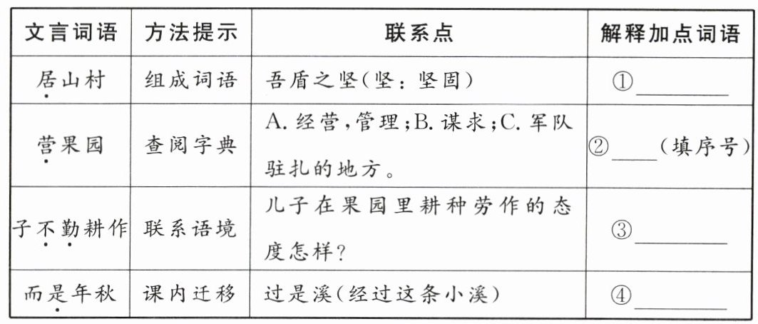 8. 参考表格中的“方法提示”和“联系点”,解释加点的文言词语。(8分)