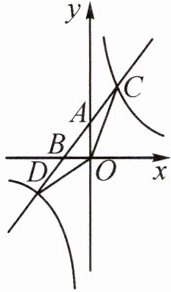 8.(2023·恩施中考)如图,在平面直角坐标系中,直线 $y = x + 2$ 交 $y$ 轴于点 $A$,交 $x$ 轴于点 $B$,与反比例函数 $y=\frac{k}{x}(k\neq0)$ 的图象在第一、三象限分别交于 $C$,$D$ 两点,$AB=\frac{1}{2}BC$,连接 $CO$,$DO$.