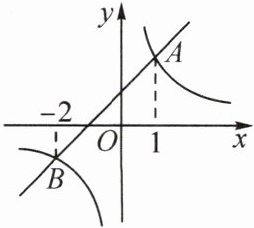 的图象相交于A,B两点,点A的横坐标为1,点B的横坐标为−2,当y1<y2时,x的取值范围是 ( )