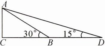 (1)由题意,得 $AC = x$,$CD = 2x+\sqrt{3}x$,$\therefore\tan15^{\circ}=\frac{AC}{CD}=\frac{x}{2x+\sqrt{3}x}=2 - \sqrt{3}$。