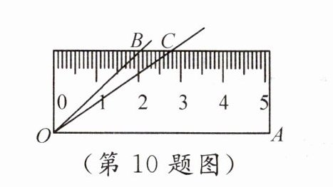 10.(2023·武汉中考)将$45^{\circ}$的$\angle AOB$按如图所示的方式放置在一把刻度尺上,顶点$O$与尺下沿的端点重合,$OA$与尺下沿重合,$OB$与尺上沿的交点$B$在尺上的读数为$2\ \text{cm}$. 若按相同的方式将$37^{\circ}$的$\angle AOC$放置在该刻度尺上,则$OC$与尺上沿的交点$C$在尺上的读数是______$\text{cm}$.(结果精确到$0.1\ \text{cm}$,参考数据:$\sin 37^{\circ} \approx 0.60$,$\cos 37^{\circ} \approx 0.80$,$\tan 37^{\circ} \approx 0.75$)