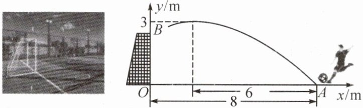 8.(2023.温州中考)一次足球训练中,小明从球门正前方8m的A处射门,球射向球门的路线呈抛物线. 当球飞行的水平距离为6m时,球达到最高点,此时球离地面3m. 已知球门高OB为2.44m,现以O为原点建立如图所示平面直角坐标系.
