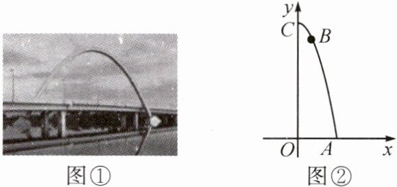 9.(2023.贵州中考)如图①,这是一座抛物线形拱桥,小星学习二次函数后,受到该图启示设计了一建筑物造型,它的截面图是抛物线的一部分(如图②所示),抛物线的顶点在C处,对称轴OC与水平线OA垂直,OC = 9,点A在抛物线上,且点A到对称轴的距离OA = 3,点B在抛物线上,点B到对称轴的距离是1.