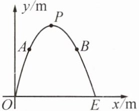 7. 现要修建一条隧道,其截面为抛物线形,线段OE表示水平的路面. 以O为原点,OE所在直线为x轴,过点O垂直于x轴的直线为y轴,建立如图所示的平面直角坐标系. 根据设计要求:OE = 10m,该抛物线的顶点P到OE的距离为9m. 现需在隧道内壁A,B处分别安装照明灯. 已知点A,B到OE的距离均为6m,则点A的坐标为________.