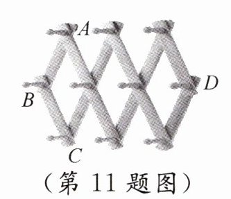 11.【注重情境化设题】如图,一个木制的活动衣帽架由三个全等的菱形构成. 已知菱形的边长为13 cm,当挂钩B,D间的距离为30 cm时,则挂钩A,C间的距离为____ cm.