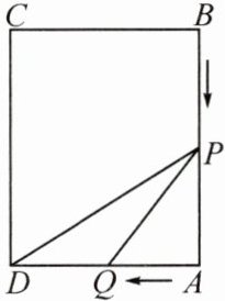 9. 如图,四边形$ABCD$为矩形,AB = 6 cm,AD = 4 cm. 已知点$Q$从点$A$出发,沿$AD$以1 cm/s的速度向点$D$运动,点$P$从点$B$出发,沿$BA$以2 cm/s的速度向点$A$运动,已知$P$,$Q$两点分别同时出发,当一个点到达终点时,另一点也停止. 设运动的时间为$t$ s.