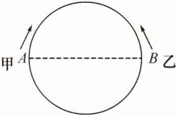 8. 小明设计了一个点做圆周运动的动画游戏,如图,甲、乙两点分别从直径的两端点$A$,$B$以顺时针、逆时针的方向同时沿圆周运动. 甲运动的路程$l(\text{cm})$与时间$t(\text{s})$满足关系:$l=\frac{1}{2}t^{2}+\frac{3}{2}t(t\geqslant0)$,乙以4 cm/s的速度匀速运动,半圆的长度为21 cm.