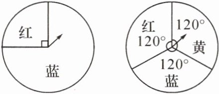 5. 小明和小刚用如图所示的两个转盘做“配紫色”游戏,游戏规则是:分别旋转两个转盘,若其中一个转盘转出了红色,另一个转出了蓝色,则可以配成紫色. 此时小刚得1分,否则小明得1分. 这个游戏对双方公平吗?请说明理由. 若你认为不公平,如何修改规则才能使游戏对双方公平?