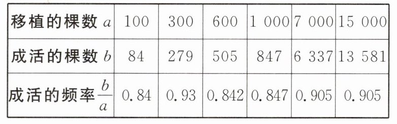 根据表中的信息,估计银杏树苗在一定条件下移植成活的概率为(精确到0.1)( )
