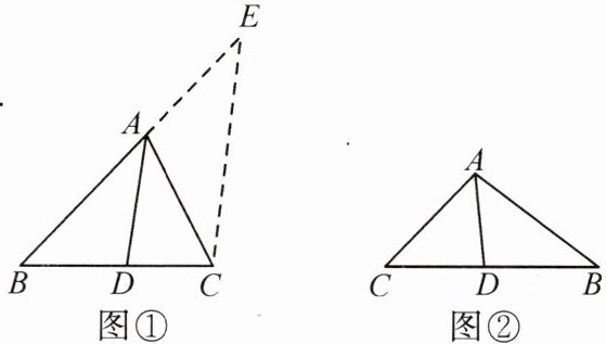(2)如图②,在$\triangle ABC$中,$AD$是角平分线,$AB = 5\ cm$,$AC = 4\ cm$,$BC = 7\ cm$. 求$BD$的长.