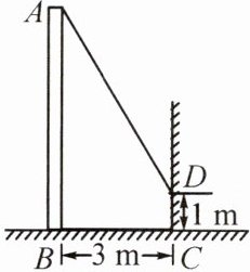 他先测得留在墙上的影子CD = 1m,又测得地面部分的影长BC = 3m,你能根据上述数据帮他算出旗杆的高度吗?