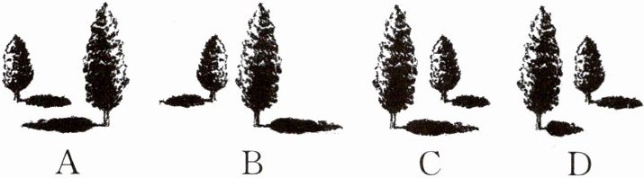 2.下列四幅图中,能表示两棵树在同一时刻太阳光下的影子的是( )