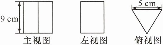 解:由三视图可知,这个几何体是三棱柱.这个几何体的侧面积是5×9×3=135(cm²).