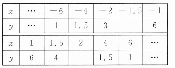 13.【注重实践探究】用描点法探究函数$y = \frac{6}{|x|}$的图象与性质,以下是探究过程,请将其补充完整.