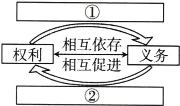 1. 下面是小云同学关于“权利与义务的关系”设计的一幅思维导图,其中①和②的内容应该是( )