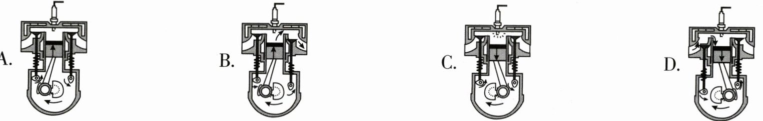 2. 某电影中,我军用巴祖卡火箭筒打下战斗机。巴祖卡火箭筒发射炮弹的过程与四冲程汽油机的哪个冲程相似 ( )