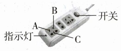 6. 如图所示是常用的插线板,闭合开关,指示灯发光,且插孔可以提供工作电压,下列说法正确的是 ( )