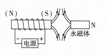 14. (3分)如图为相邻的电磁铁和永磁体,请标出电磁铁的磁极并画出电磁铁和永磁体之间的磁感线(每个磁极至少画4条磁感线)。