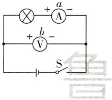 13.(2分)如图所示,在圆圈a、b中填入适当的电表符号,使灯泡正常工作,并用“+”“-”标出电表的正负接线柱。