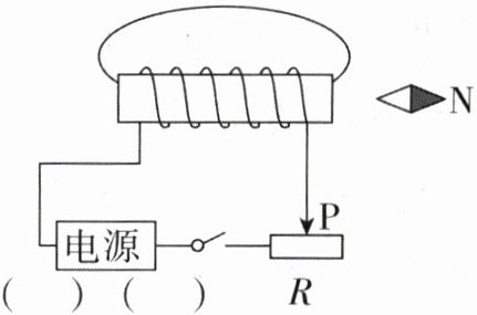 14. (4分)如图所示,开关闭合后,螺线管右侧的小磁针为静止时的指向。请你在图中标出磁感线的方向,并在括号内标出电源的“+”“-”极。