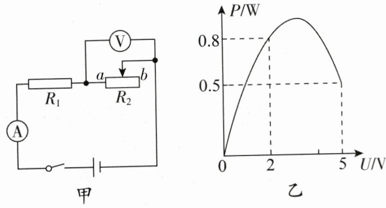 12. 如图甲所示,R₁为定值电阻,变阻器 R₂的滑片从 a 端滑到 b 端的过程中,R₂消耗的电功率 P 与其两端电压 U 的关系图象如图乙所示,下列说法正确的是( )