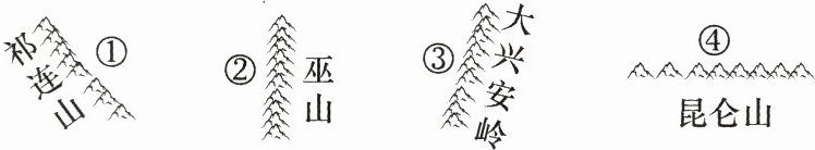 (1)阿尔泰山脉 祁连山脉 西北—东南
