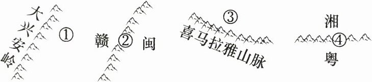 (1)山脉①是____,山脉③是____,两山脉的走向均为____走向。