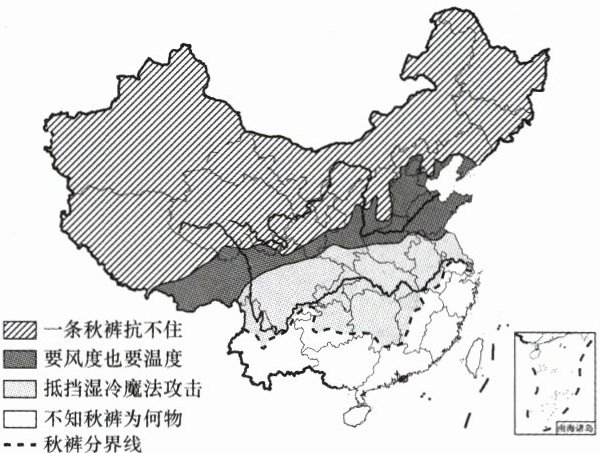 1. 从“秋裤预警地图”中可以看出,中国气温在空间分布上的规律是 ( )