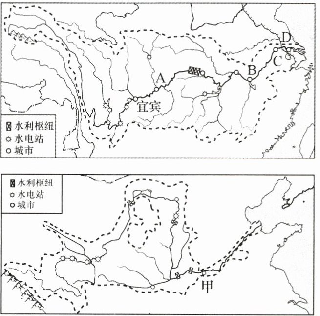 (3)图中长江沿岸四个城市中,属于长江中、下游河段分界点的是____。(填字母)