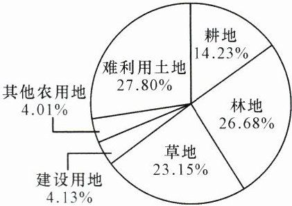 (1)利用类型______,其中______和难利用土地比重较大,______、______比重较小。