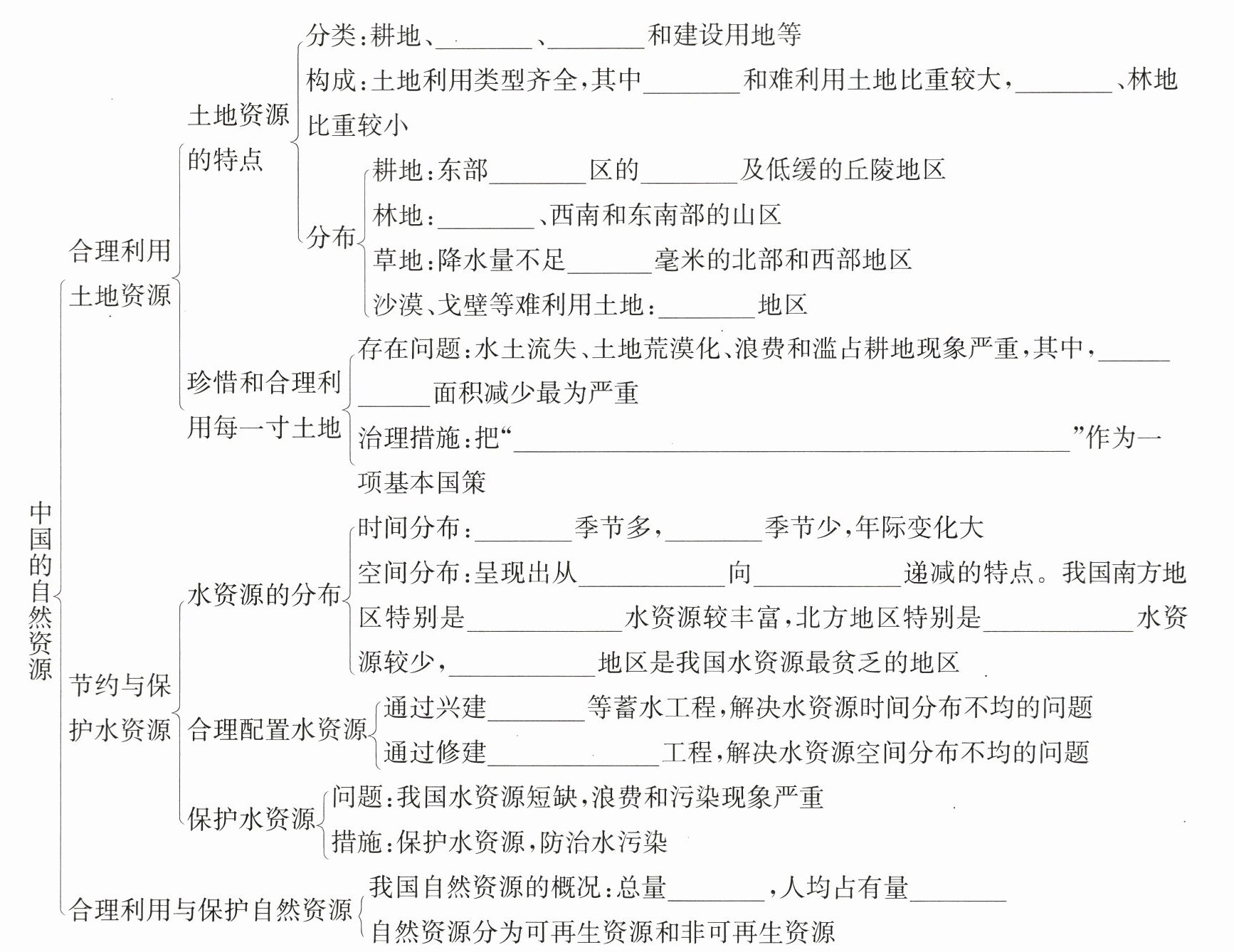 林地 草地 草地 耕地 季风 平原 东北 400 西北 优质耕地 十分珍惜和合理利用每一寸土地,切实保护耕地 夏秋 冬春 东南沿海 西北内陆 长江流域 华北平原 西北内陆 水库 跨流域调水 丰富 少