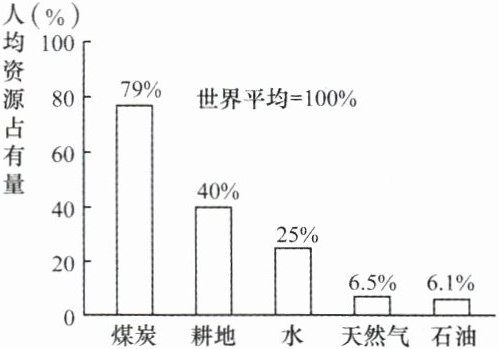 1. 下列资源中,人均占有量最接近世界平均水平的是( )