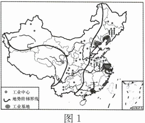 (1)由图1可知,我国四大工业基地都位于我国地势的第_____级阶梯,我国四大工业基地的分布特点是____________________。