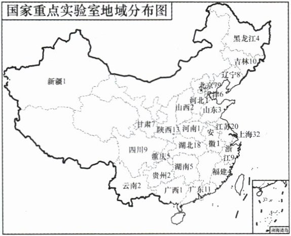 国家重点实验室分布反映了我国高等教育、科技实力及高新技术产业发展的地域差异。读图,完成15~16题。