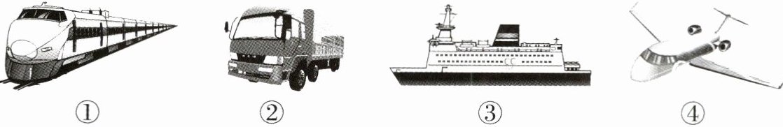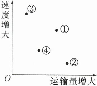 4. 比较我国主要运输方式的运量和速度的关系,说出如图中数字代表的运输方式分别是( )