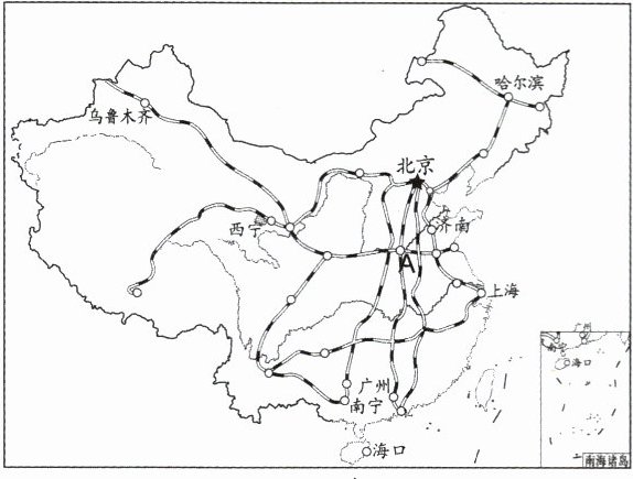 (2) 青青一家途中经过A城时火车停留了较长时间,它是______省的省会。到达广州后,如果青青想去香港旅游,最便捷的交通工具是乘______;如果再想去上海旅游,最经济的交通工具是乘______,但是必须有充足的时间;如果想从广州去乌鲁木齐,在有一定经济实力的情况下,又想节省时间,应选择的交通方式是__________。
