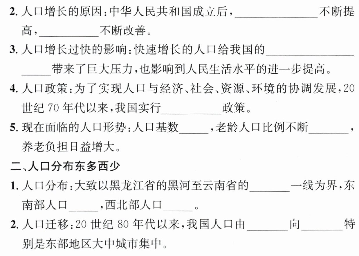 @@2. 人民生活水平 医疗条件 3. 资源、环境和经济发展 4. 计划生育 5. 大 提高 二、 1. 腾冲 多 少 2. 乡村 城市