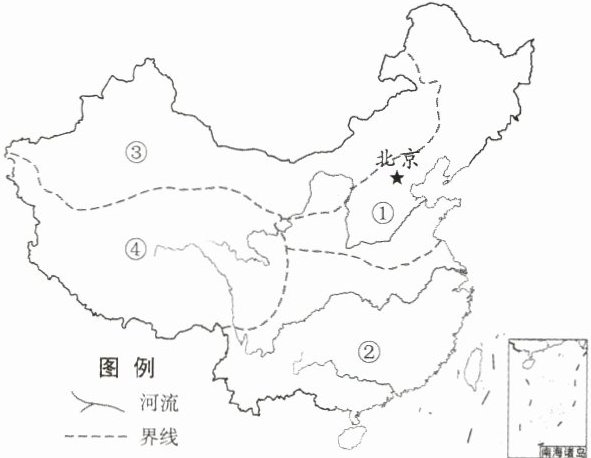 9. 读“我国四大地理区域划分图”及相关资料,回答下列问题。
